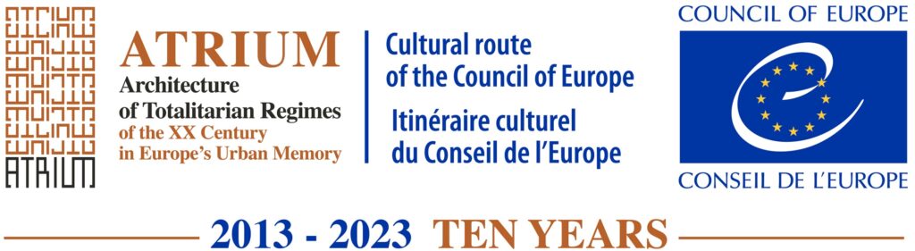 ATRIUM – Architecture of Totalitarian Regimes of the 20th century In Europe’s Urban Memory è una Rotta Culturale Europea certificata dal Consiglio d’Europa che consente di esplorare alcuni aspetti della storia del XX secolo, guardando agli eventi traumatici che lo hanno contraddistinto attraverso il prisma dell’architettura e del paesaggio urbano. Le tracce dei regimi totalitari e dittatoriali di questo periodo sono ancora ben visibili in molte città europee e la rimozione del loro significato storico e simbolico è stato finora l’atteggiamento prevalente delle comunità che li ospitano. Al contrario, ATRIUM vuole esplorare tale significato simbolico e storico attraverso la chiave interpretativa della dissonanza, trattando queste architetture come oggetti utili a stimolare una riflessione critica sulla storia che li ha generati, oltre alla conoscenza degli aspetti puramente stilistici e architettonici.