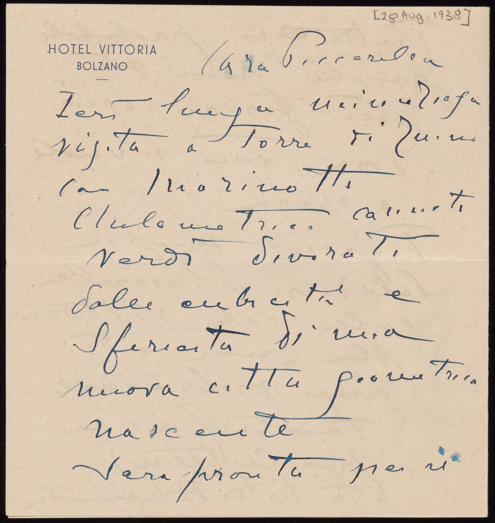 La documentazione storica, di cui fa parte anche la lettera riportata qui sotto, è conservata alla Beinecke Rare Book and Manuscript Library della Yale University, che ha acquisito parte dell’archivio privato di Filippo Tommaso Marinetti da sua figlia Luce Marinetti alla fine degli anni Settanta.