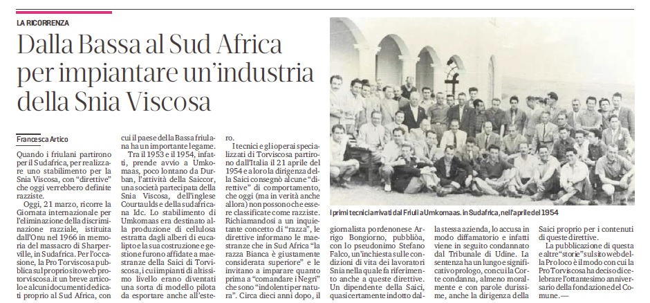 La SNIA Viscosa in Sudafrica [marzo 2020] 17 Marzo 2020 0 administrator Rassegna stampa Torviscosa – Sud Africa, un legame lungo 70 anni https://www.udinetoday.it/cronaca/comune-torviscosa-80-anni-nuovo-sito.html https://qbquantobasta.it/luoghi/torviscosa-e-la-saicorr-di-umkomaas